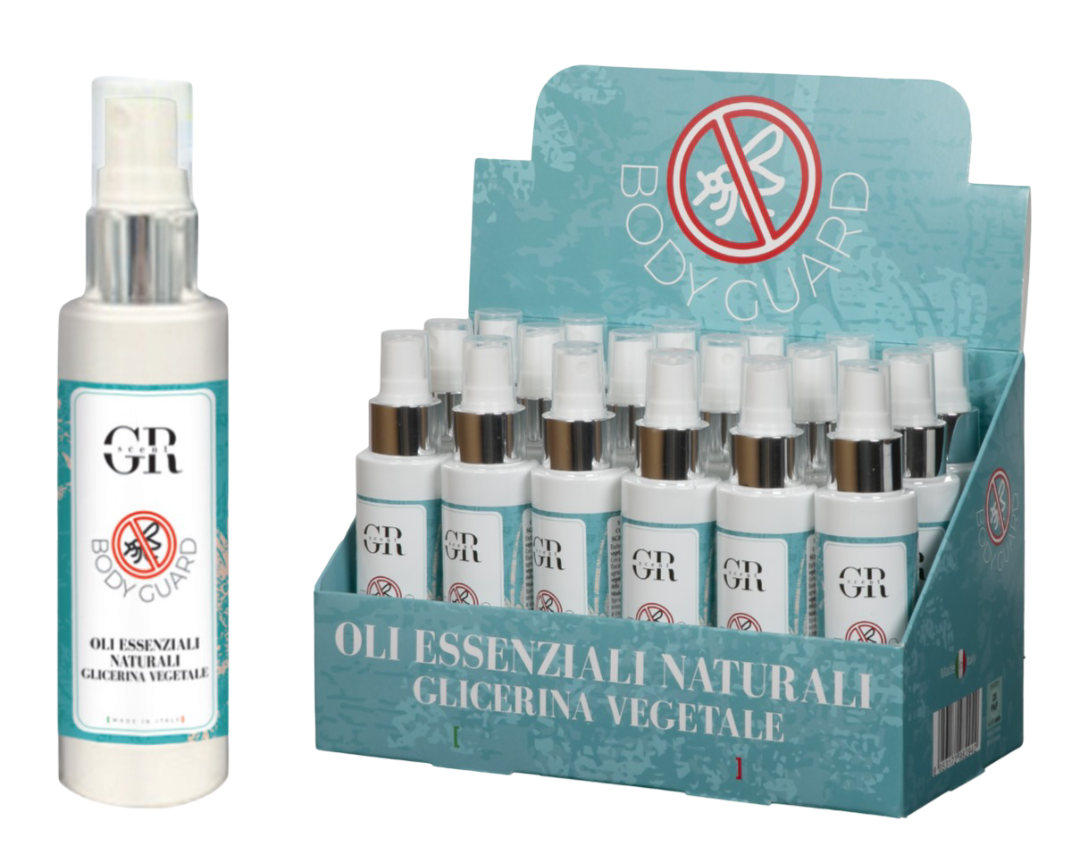 Esplosiva miscela di 6 oli essenziali vegetali naturalmente sgraditi agli insetti con glicerina vegetale.