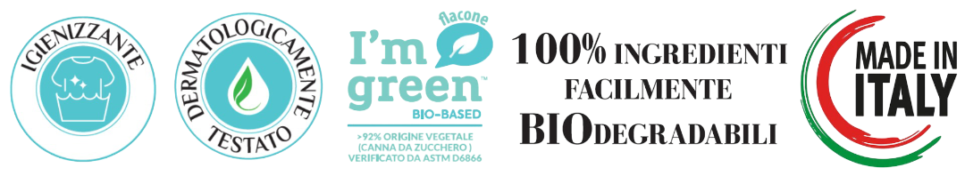 Flacone di origine vegetale “I’m green” in bio PE riciclabile al 100% in due formati: 100 ml e 400 ml, consente fino a 50 lavaggi profumatissimi.