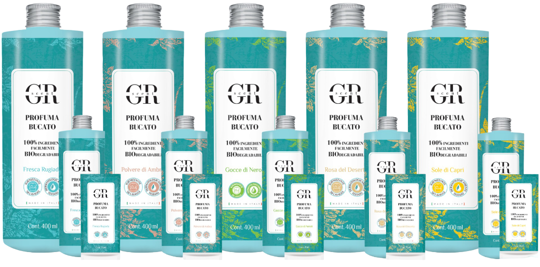 PREGIATI OLI ESSENZIALI CON 100% INGREDIENTI FACILMENTE BIODEGRADABILI.